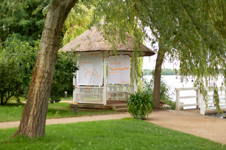Diesem Ansatz folgend, präsentiert die Liebermann-Villa am Wannsee ab 8. Juli 2023 die Ausstellung „Die Zukunft für sich“ in Zusammenarbeit mit der Klasse von Prof. Christine Streuli, Fakultät Bildende Kunst der Universität der Künste Berlin. 23 Studierende der Klasse Streuli zeigen eigens für die Ausstellung kreierte Kunstwerke in den Innenräumen und im Garten der Liebermann-Villa. Inspiriert von Liebermann und seiner Kunst, seiner Familiengeschichte und des geschichtsträchtigen Ortes sind auf Einladung der Liebermann-Villa über zwanzig Arbeiten der Studierenden, darunter Video, Fotografie, Plastik, Installation, Sound, Malerei und Zeichnung, zu sehen.